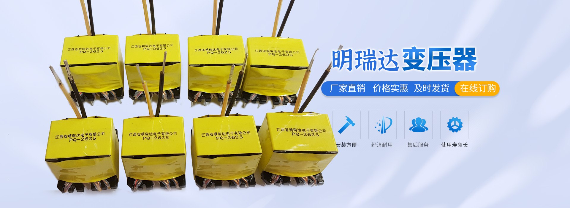 江西省明瑞達電子有限公司座落于江西省贛州市石城縣,是一家研發(fā)、生產(chǎn)、銷售各種變壓器廠商。生產(chǎn)銷售、技術(shù)服務、產(chǎn)品研發(fā)為一體的綜合性企業(yè),主要生產(chǎn)、銷售產(chǎn)品:變壓器(EE型、ER型、PQ型、RM型、POT型、UU型、DR型等產(chǎn)品),主要適用于:開關(guān)電源、適配器、機頂盒、液晶電視、空調(diào)、冰箱、LED、電腦、音箱、DVD、飲水機、電磁爐等各種家用電器及航空、醫(yī)療事業(yè)。